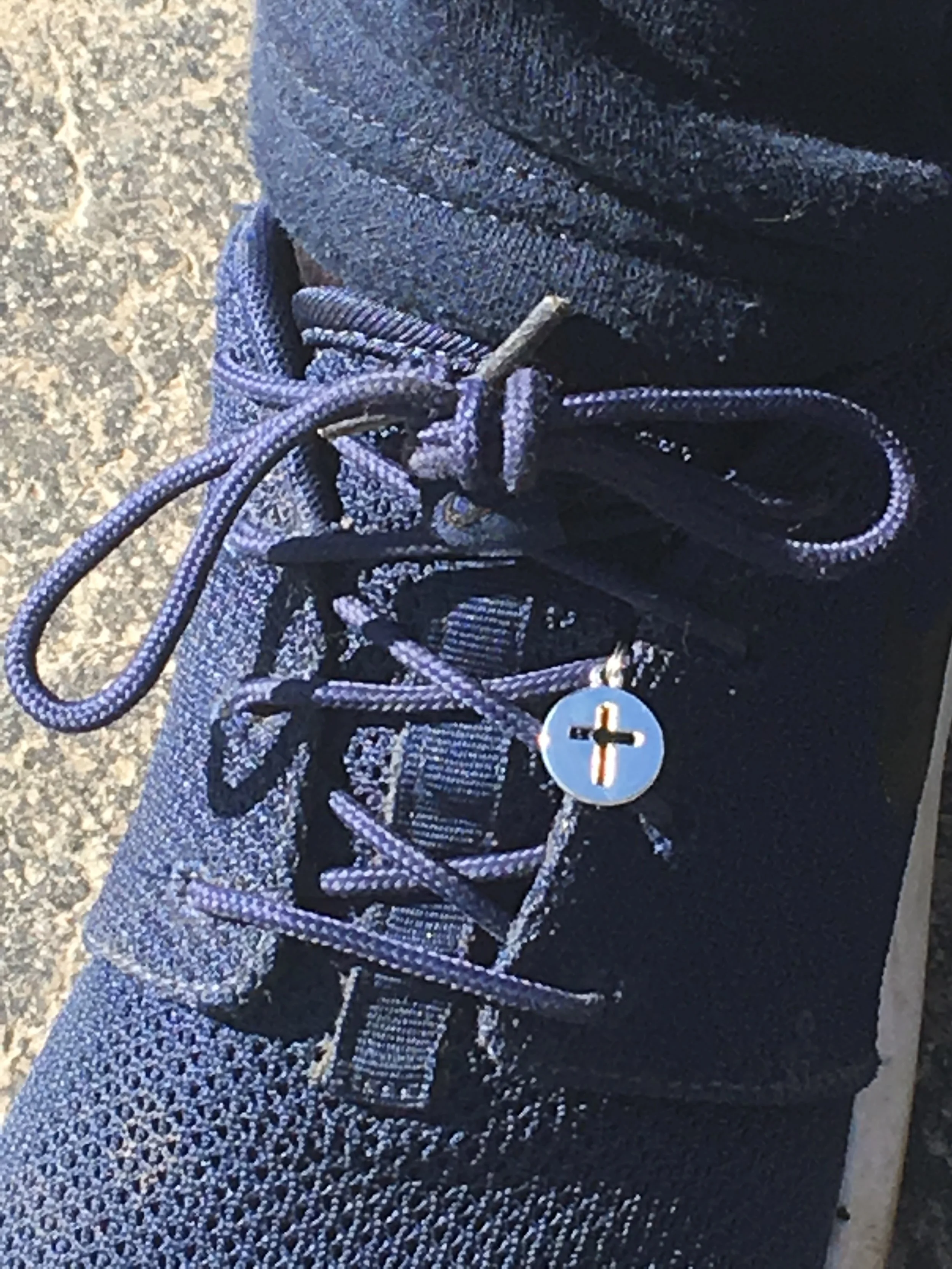 Shoelace medals are an innovative & functional twist to the tradition of wearing devotional medals on a necklace. Using a reinforced clasp, medals easily and durably attach to a shoelace. Perfect for athletes, these medals can be tucked into cleat and sneaker laces. Great for school shoes or any laced shoe!